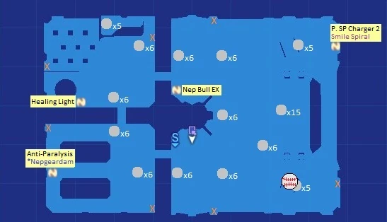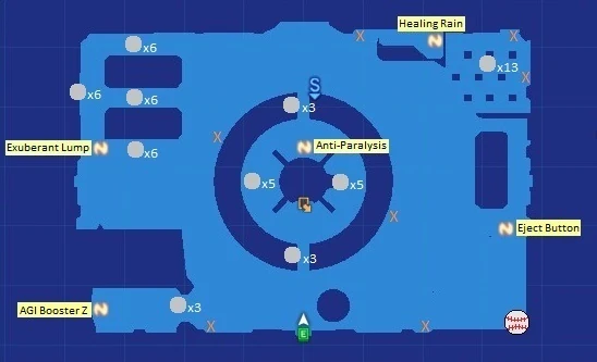 The following Items can be get in the dungeon. Items from the Treasure Chest can be obtain only once. Numbers are marked on the map above.