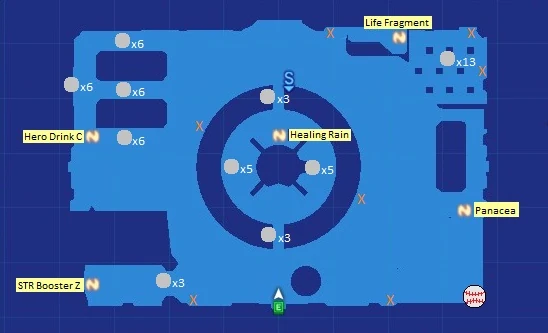 The following Items can be get in the dungeon. Items from the Treasure Chest can be obtain only once. Numbers are marked on the map above.