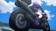 Back at the festival, Nepgear announces that she will be doing the monster fighting show herself, when suddenly, Older Neptune appears on the screen behind her to hype up the audience. She then makes them play along by telling them to chant "boing!" to kick-off the show. Coming out with an explosive entrance, she then changes to her Generator Unit costume to amaze the crowd. Nepgear later joins in by transforming into Purple Sister and starts flying around with her.