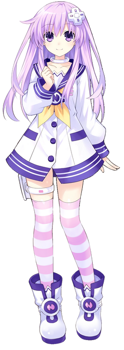 Nepgear (ネプギア,Nepugia), also known as Purple Sister (パープルシスター,Pāpuru Shisutā), is the CPU Candidate of Planeptune and Purple Heart's younger sister and the secondary protagonist of the Hyperdimension Neptunia franchise. Much like her sister who represents a fictitious Sega Console, Nepgear represents a fictitious Sega Handheld.