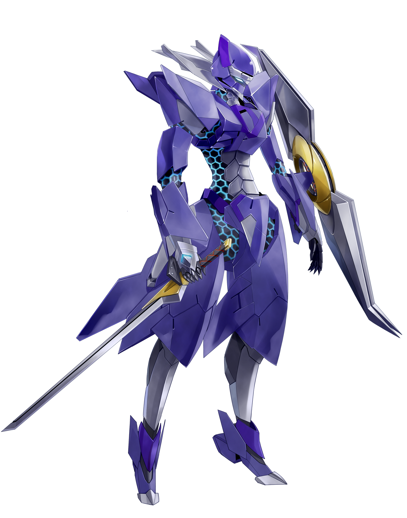 Steamax's mech suit is a large, blue-colored suit with blue rings on the sides. He carries a large sword in his right hand and a giant shuriken on his left.
