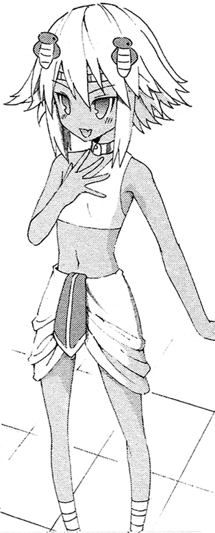 Vee Seturn is a kind and reckless person. She helps Nepgear look for her sister, yet in her enthusiasm sets off a lot of traps and after being bailed out, she happily hugs Nepgear.