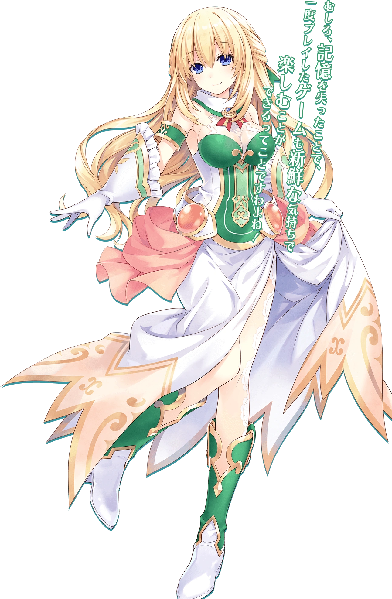 Green Heart is the goddess form of Vert. She retains her mature aura with extra confidence to her words.